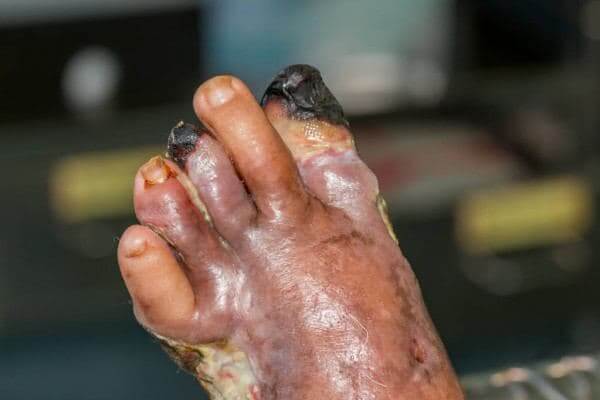 kaki dengan gangren File foto. Kaki wanita itu tidak bisa diselamatkan.